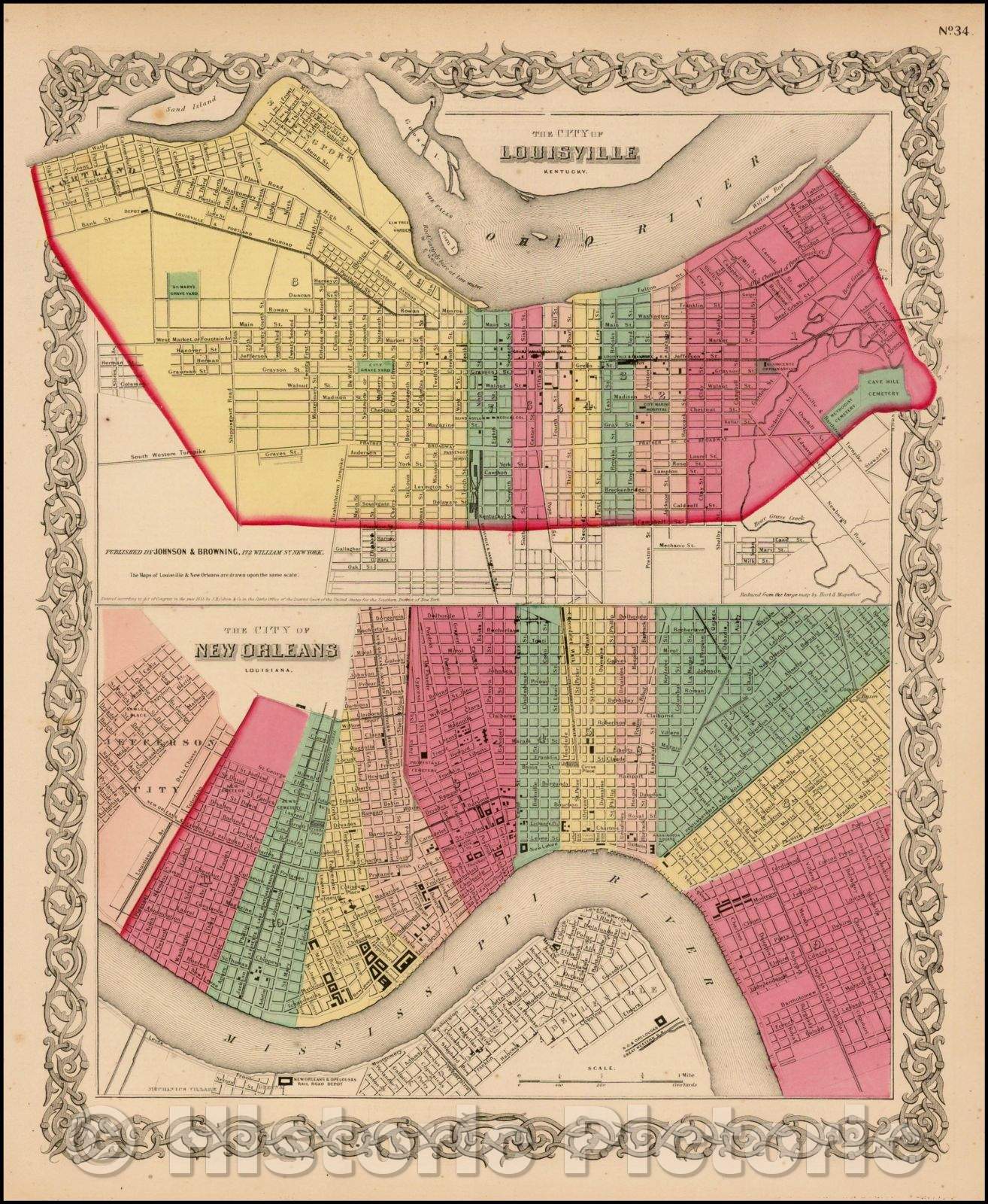 Colton's The City of Louisville [with] Colton's The City of New Orleans, 1859, Joseph Hutchins Colton