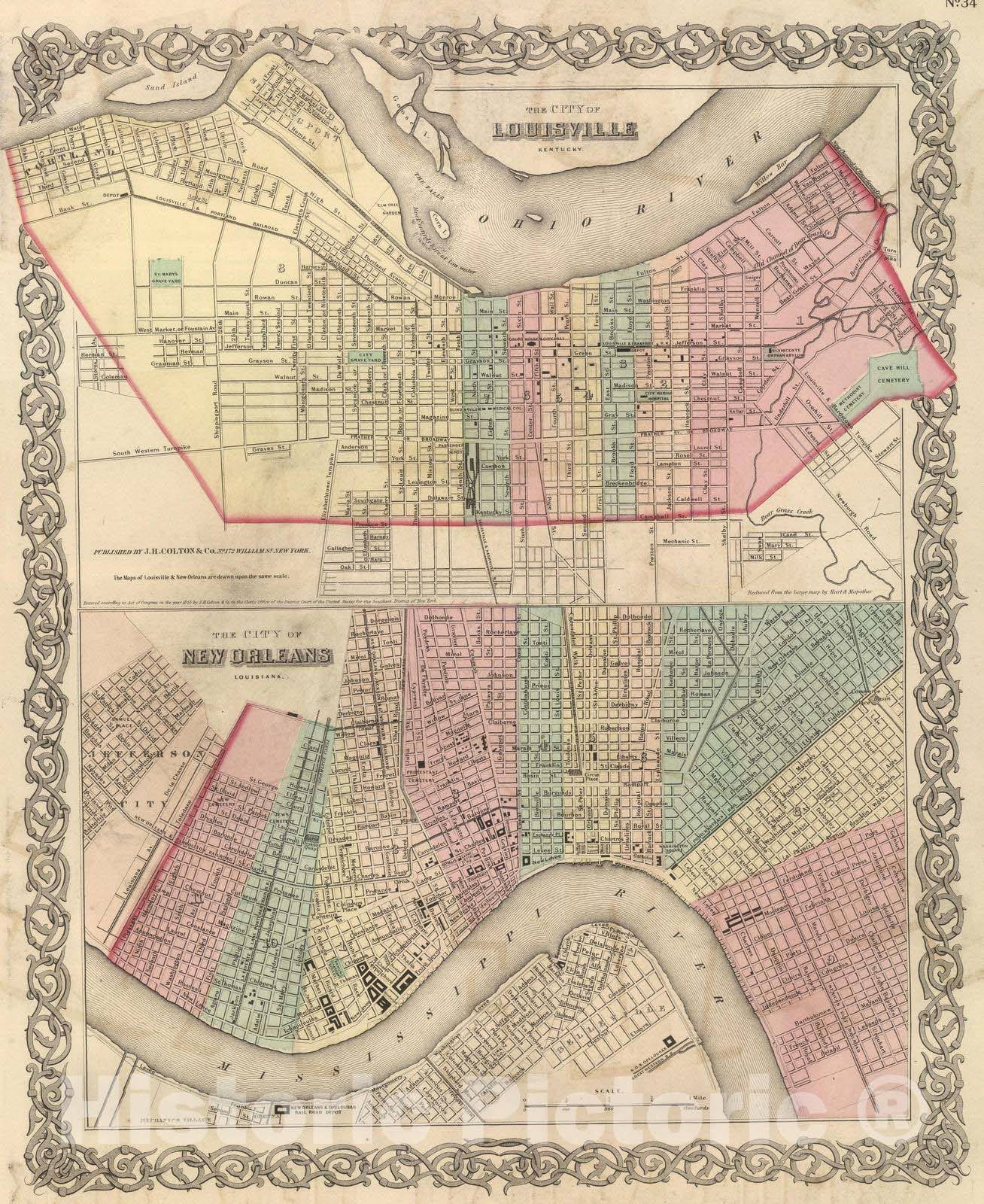 Historic Map : National Atlas - 1857 The City of Louisville, Kentucky. The City of New Orleans, Louisiana - Vintage Wall Art