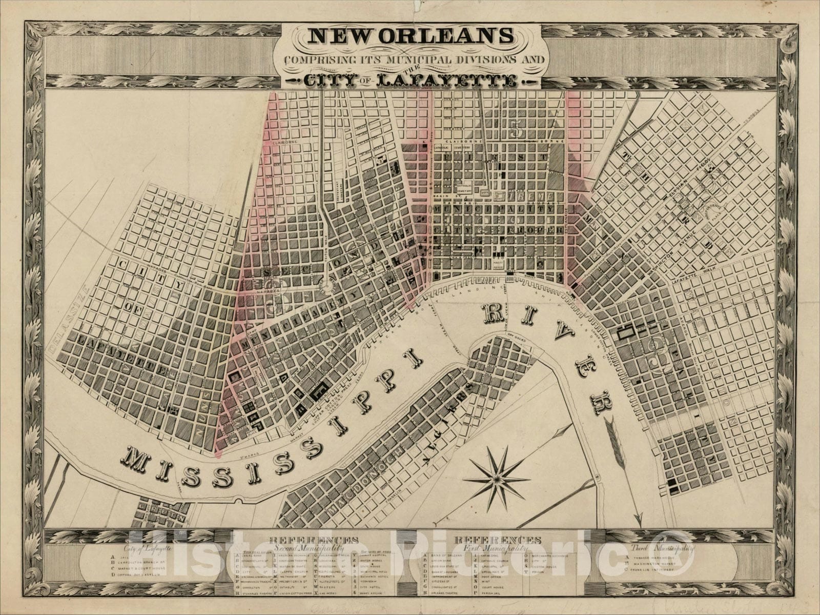 New Orleans Comprising Its Municipal Divisions and The City of Lafayette, c1842,