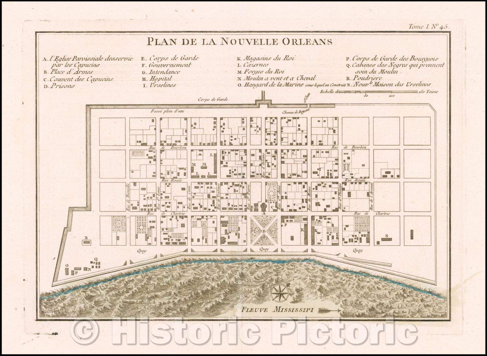 Plan De La Nouvelle Orleans/Map Of New Orleans, 1764, Jacques Nicolas Bellin