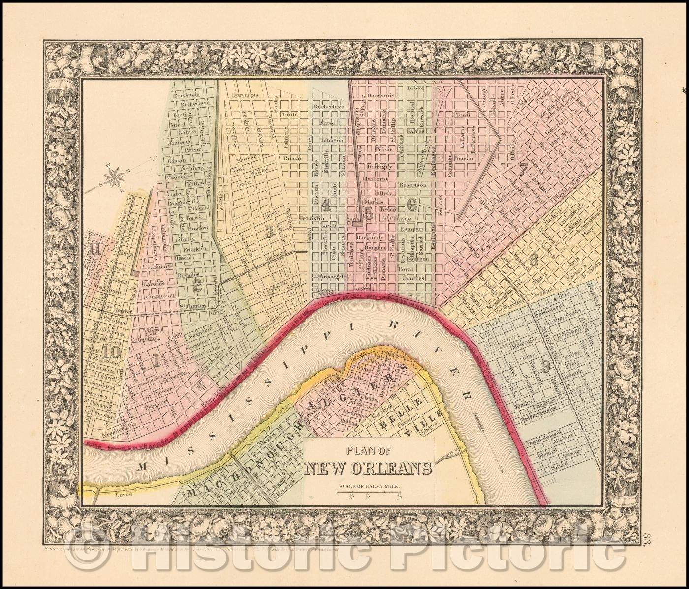 Historic Map - Plan of New Orleans, 1865, Samuel Augustus Mitchell Jr. v1