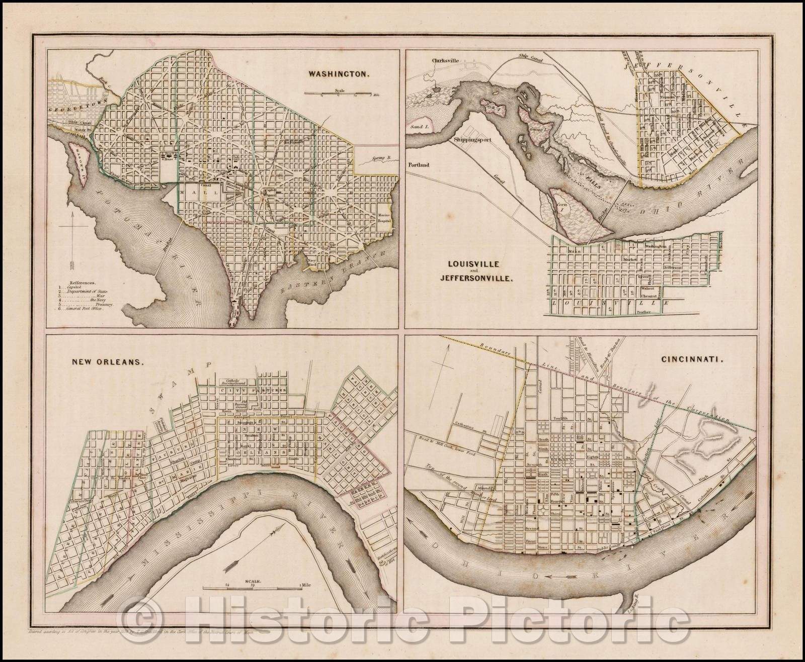 • .Historic Map - washington with New Orleans and Louisville and Jeffersonville and Cincinnati, 1838, Thomas Gamaliel Bradford v1