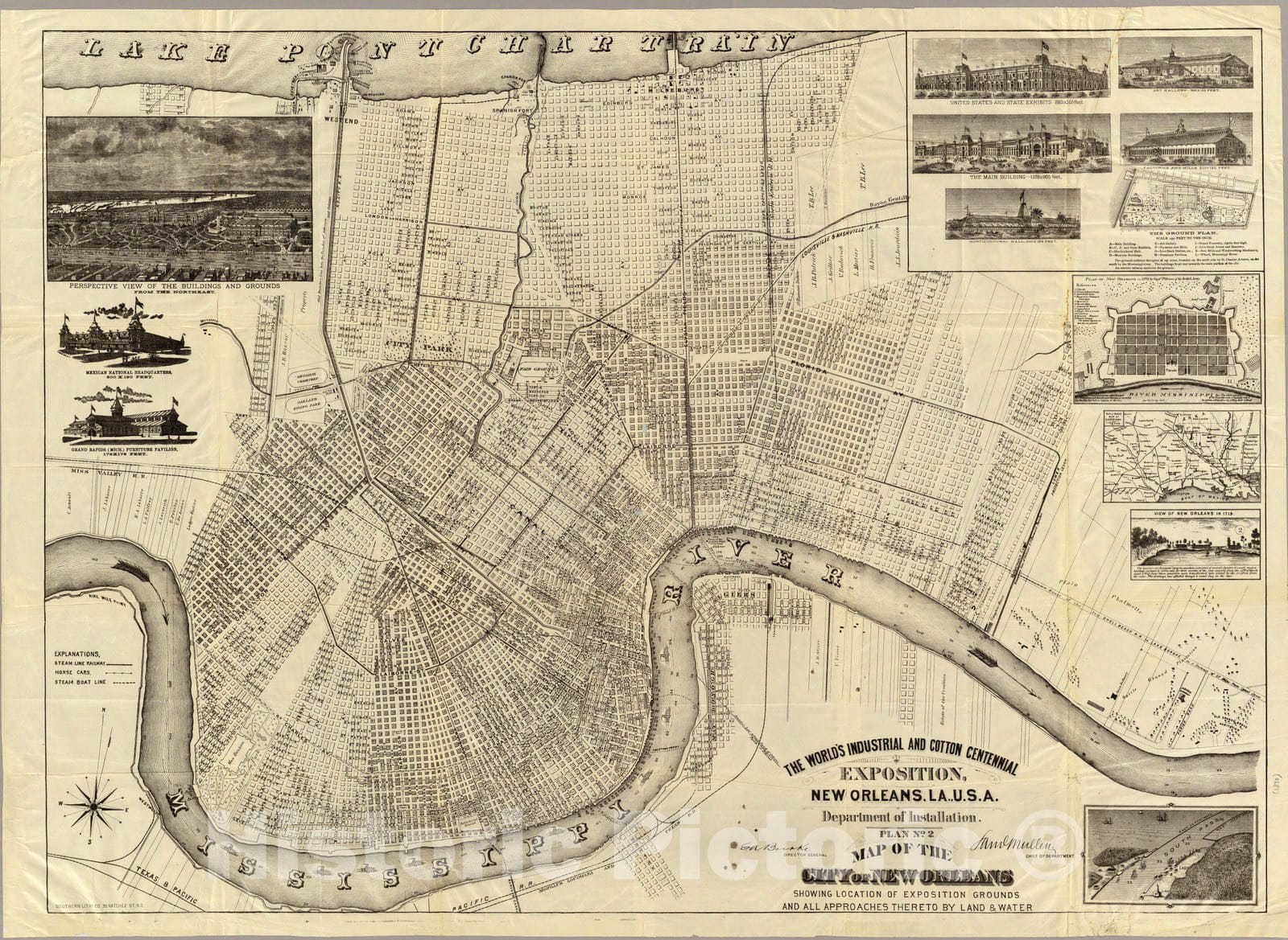 • .Historic Map - World's Industrial and Cotton Centennial Exposition, New Orleans, La. Plan No. 2 of the City of New Orleans, 1885 - Vintage Wall Art