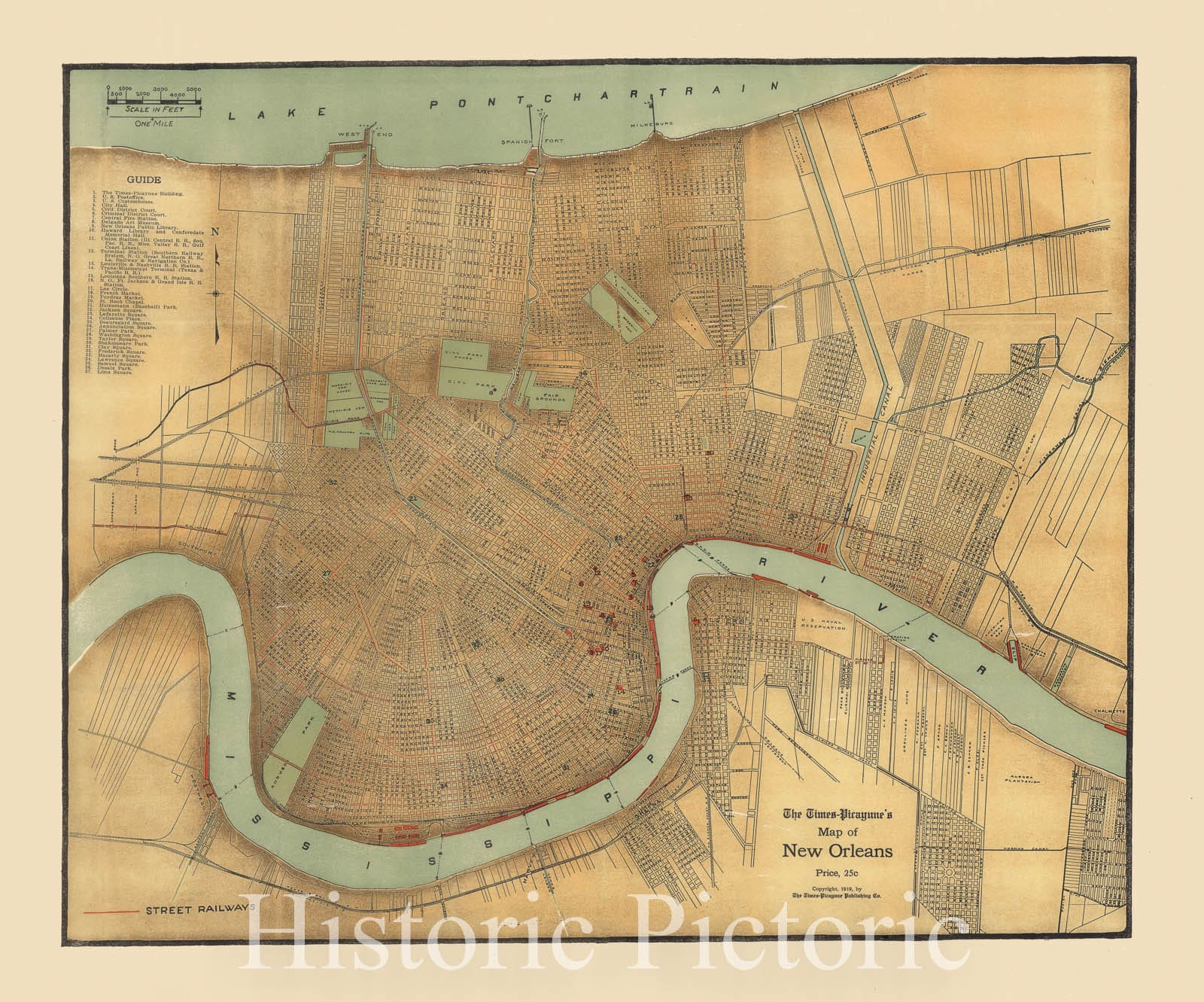 Historic Map : New Orleans (Louisiana) 1918, Map showing streets and roadways available for comfortable automobile traffic : New Orleans, Louisiana, 1918, Antique Vintage Reproduction