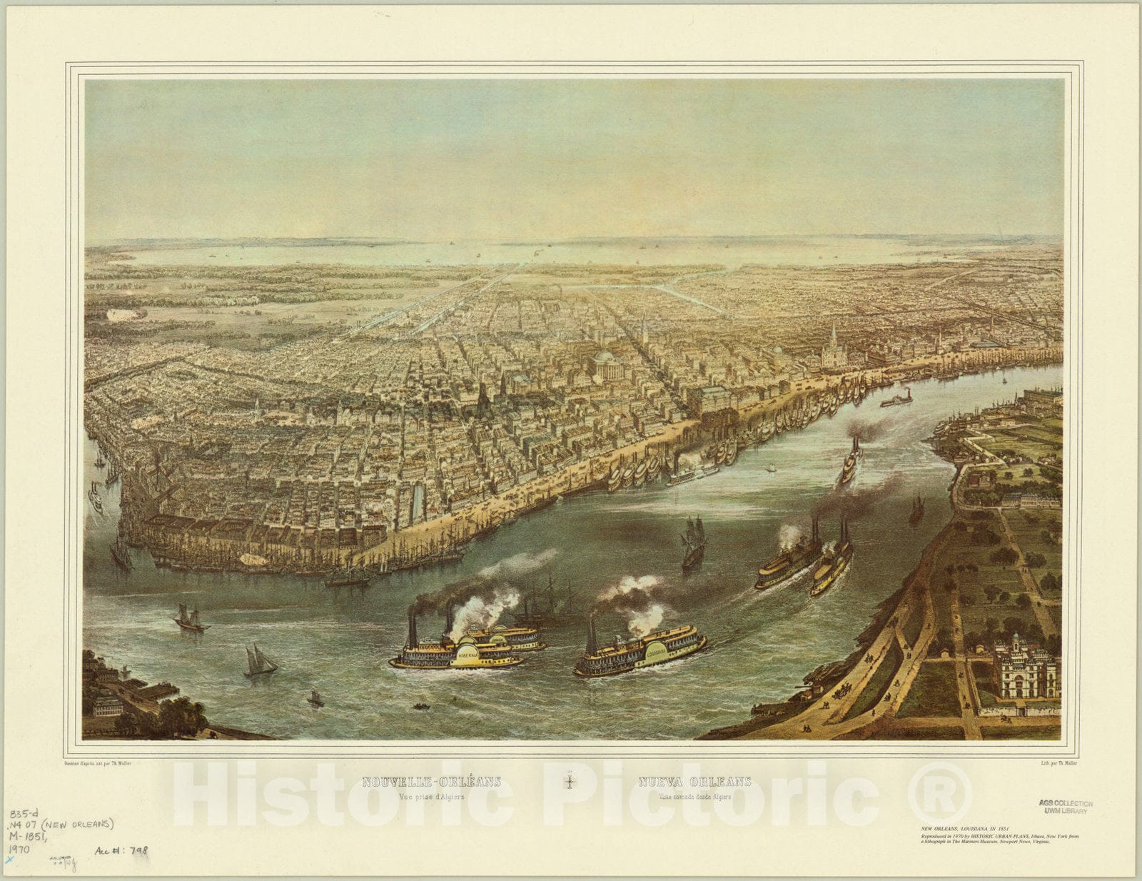 Map : New Orleans, Nouvelle-Orleans, vue prise d'Algiers, Nueva Orleans, vista tomada desde Algiers. , Antique Vintage Reproduction