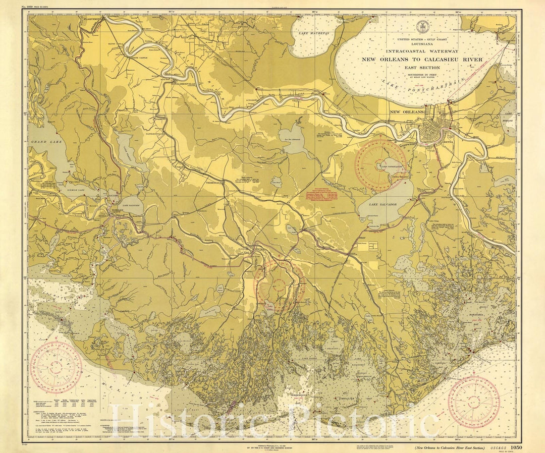 Historic Nautical Map - New Orleans To Calcasieu River East Section, 1939 NOAA Chart - Louisiana (LA) - Vintage Wall Art