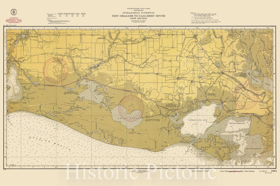 Historic Nautical Map - New Orleans To Calcasieu River, West Section, 1939 NOAA Chart - Louisiana (LA) - Vintage Wall Art