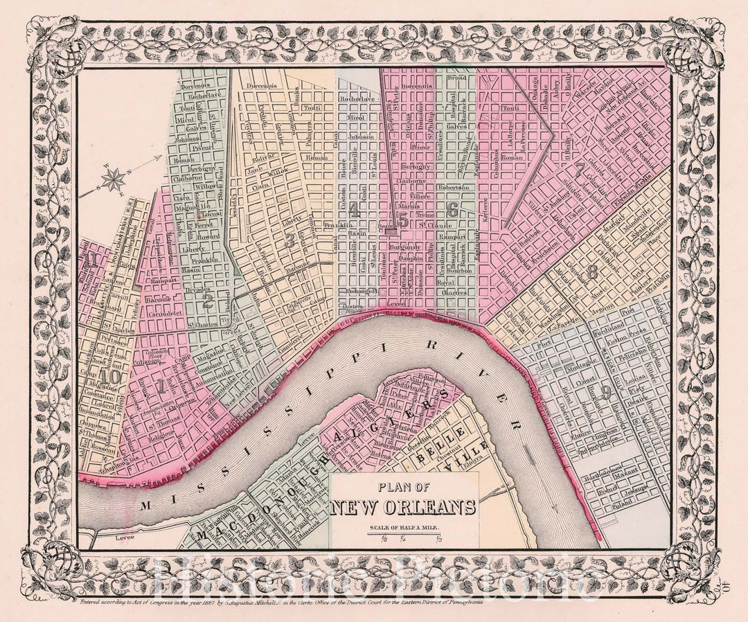Historic Map - Plan of New Orleans, 1865, Samuel Augustus Mitchell Jr. v2