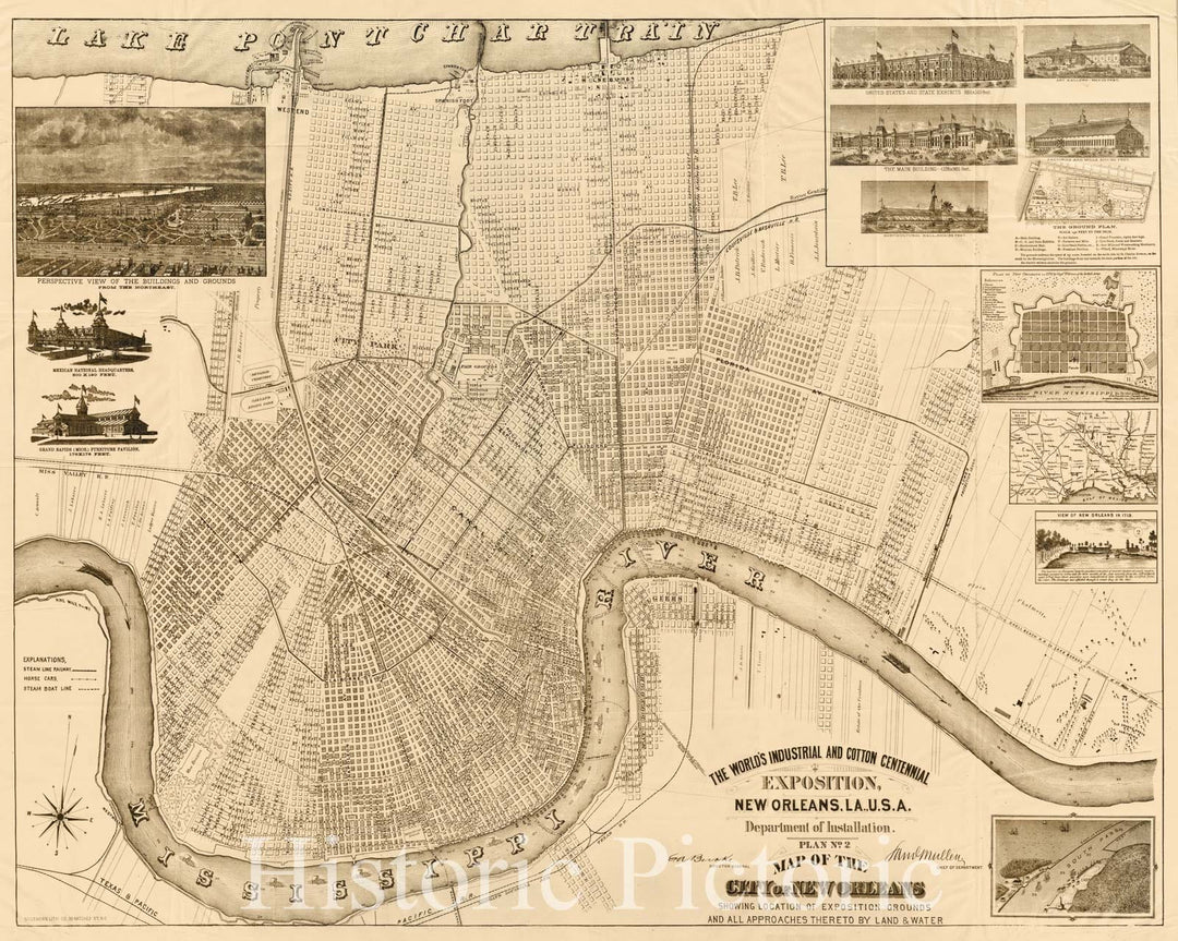 Historic Map - World's Industrial and Cotton Centennial Exposition, New Orleans, La, City of New Orleans, 1885 - Vintage Wall Art