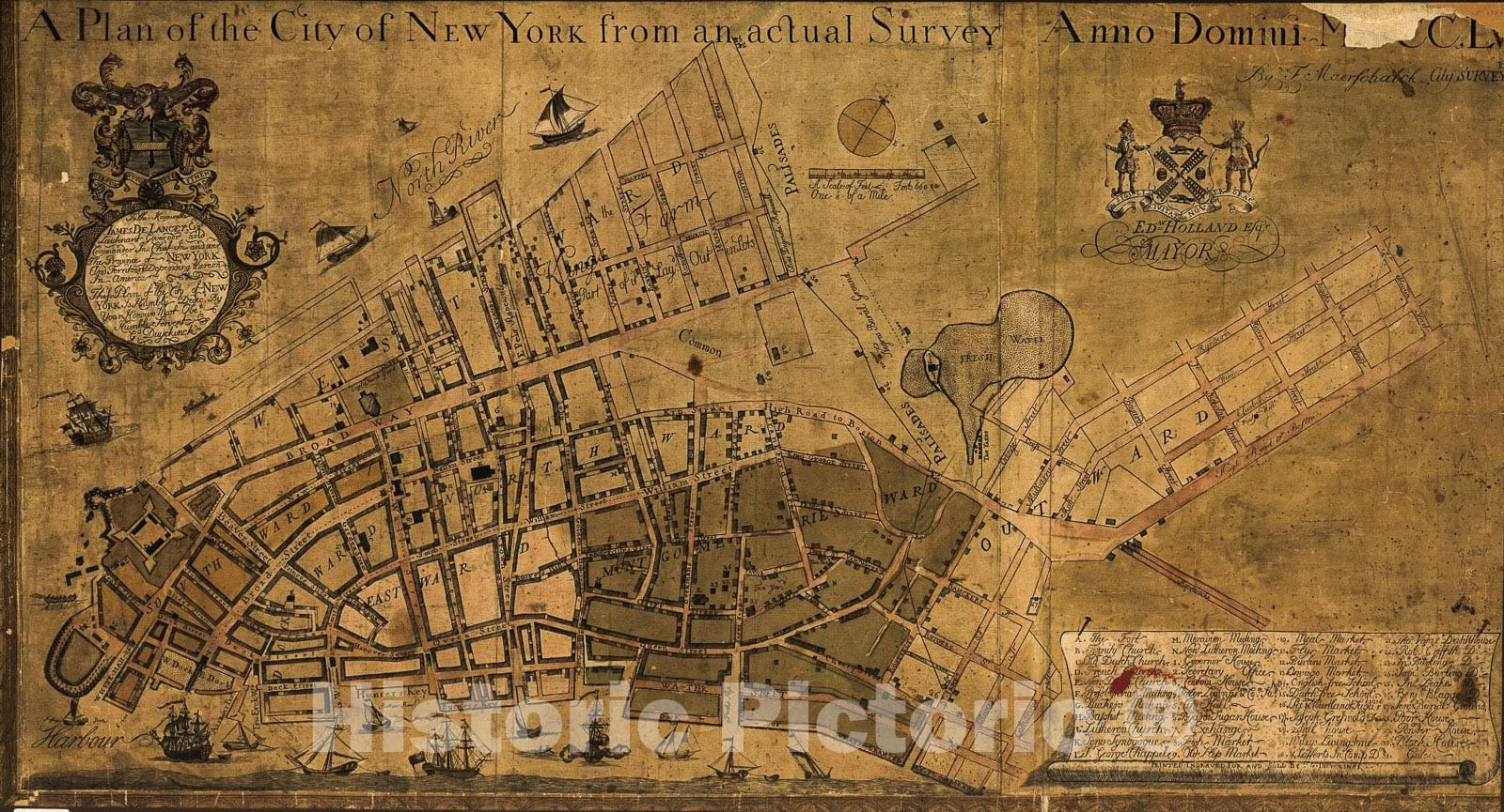 Historic 1755 Map - A Plan of The City of New York from an Actual Survey, Anno Domini, MDCC,LV