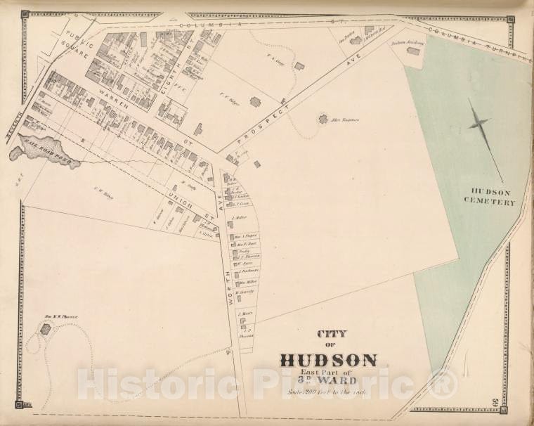 Historic 1873 Map - City Of Hudson East Part Of 3Rd Ward. [Township] - Columbia County (N.Y.Atlas Of Columbia County, New York. - Vintage Wall Art