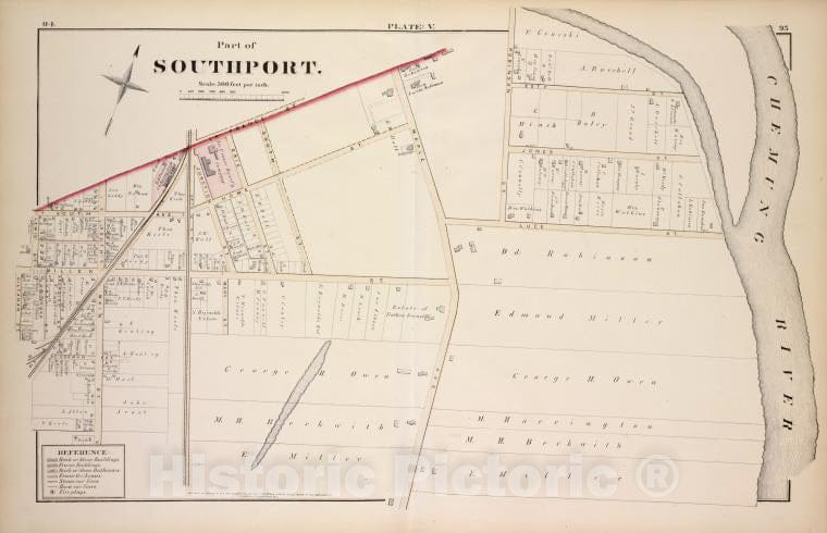Historic 1876 Map - Part Of Southport - Elmira (N.Y.City Atlas Of Elmira, New York