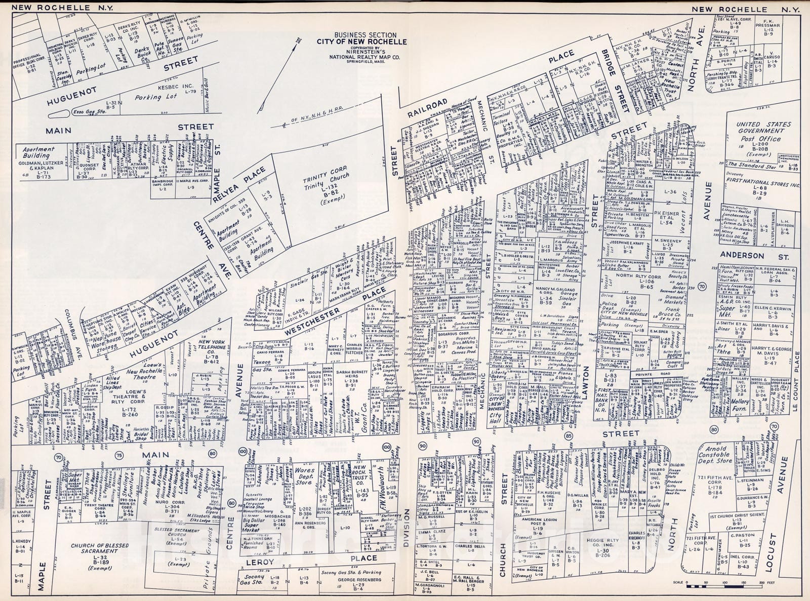Historic Map : Business Section, City of New Rochelle (New York)., 1947, Vintage Wall Decor