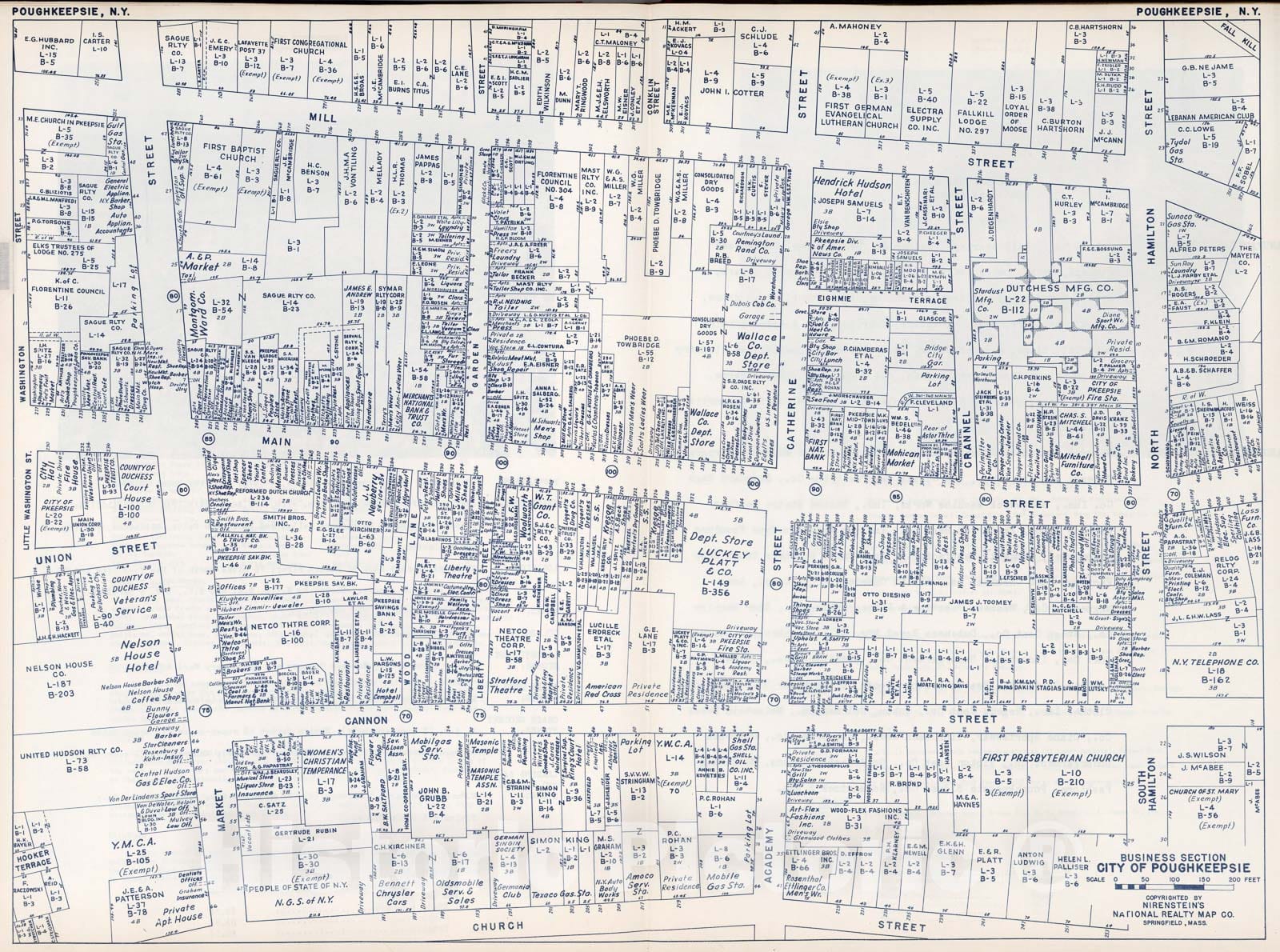 Historic Map : Business Section, City of Poughkeepsie (New York)., 1947, Vintage Wall Decor