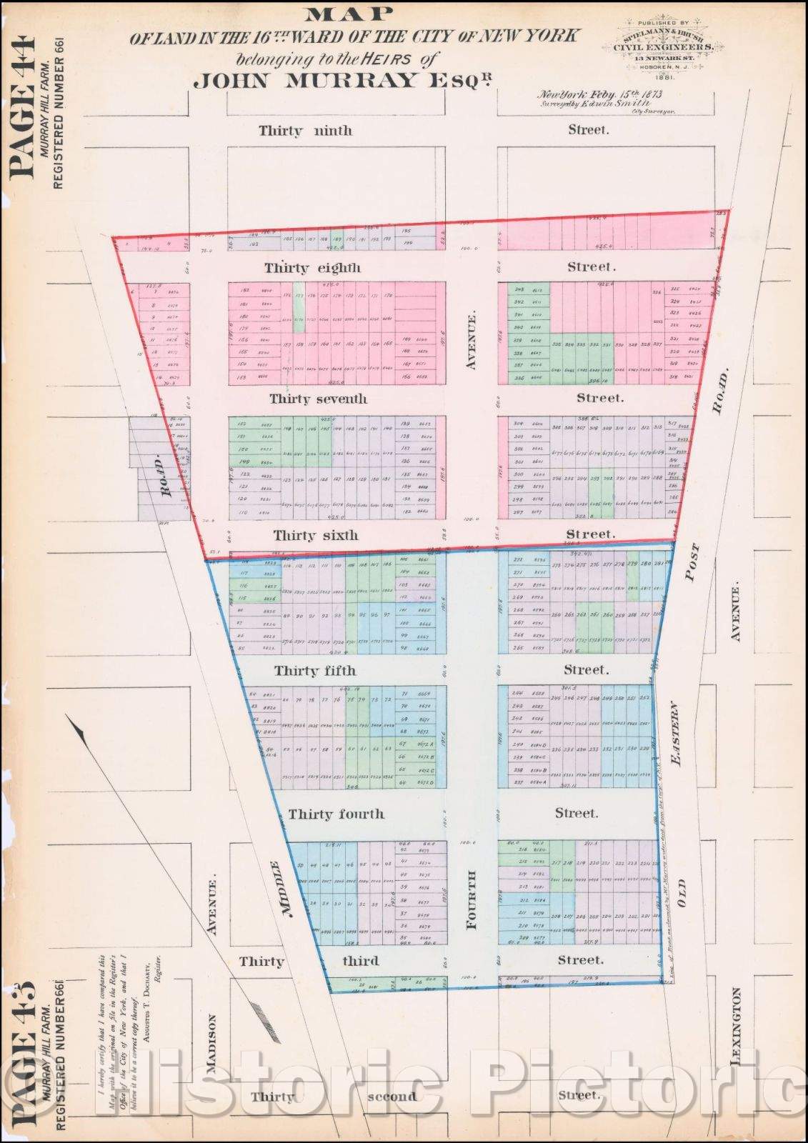 Map of Land in the 16th Ward of the City of New York belonging to the Heirs of John Murray Esqr., 1881, Spielmann & Brush