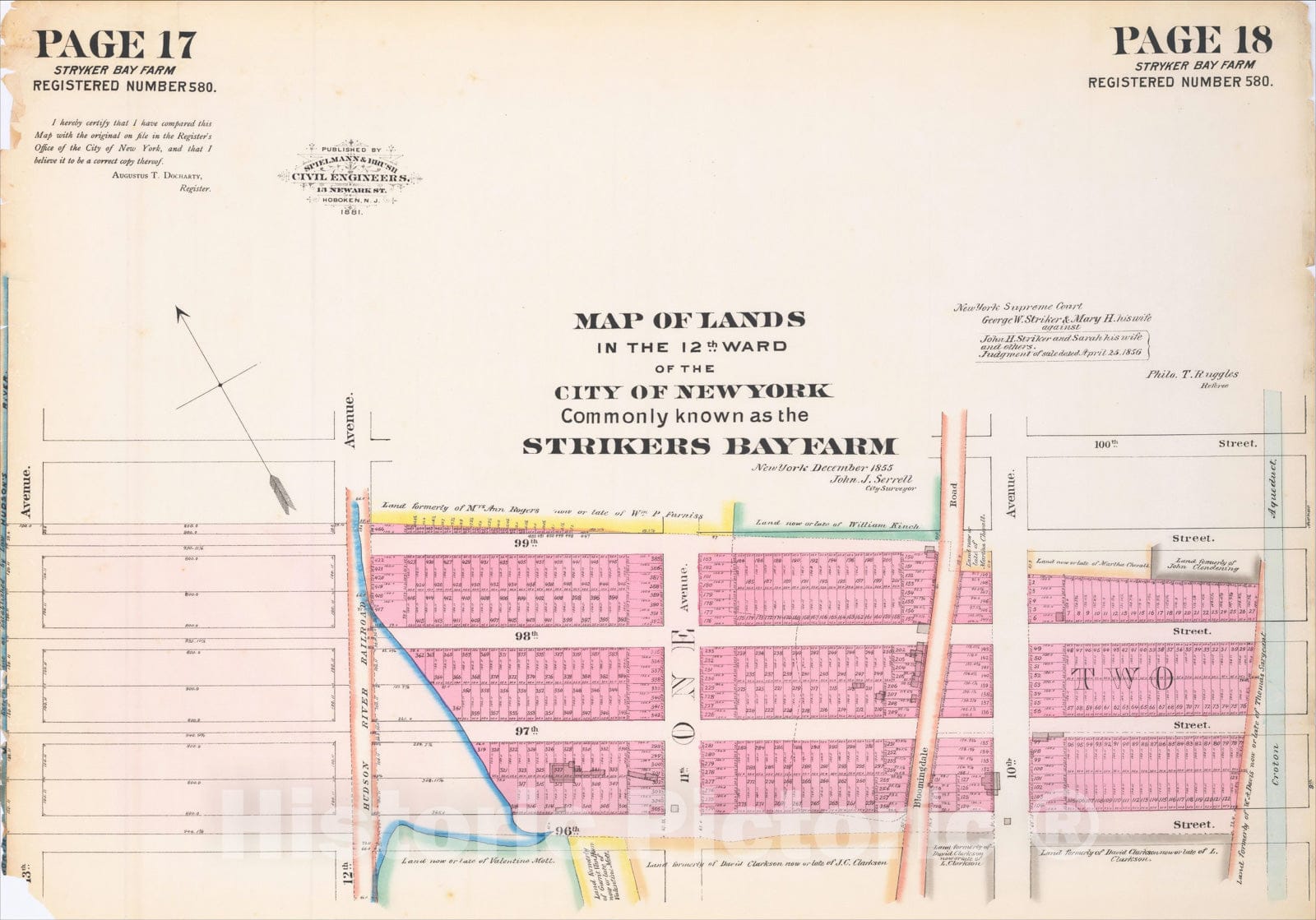 Historic Map : Map of Lands in the 12th Ward of the City of New York Commonly known as the Strikers Bay Farm., 1881, Spielmann & Brush, Vintage Wall Art
