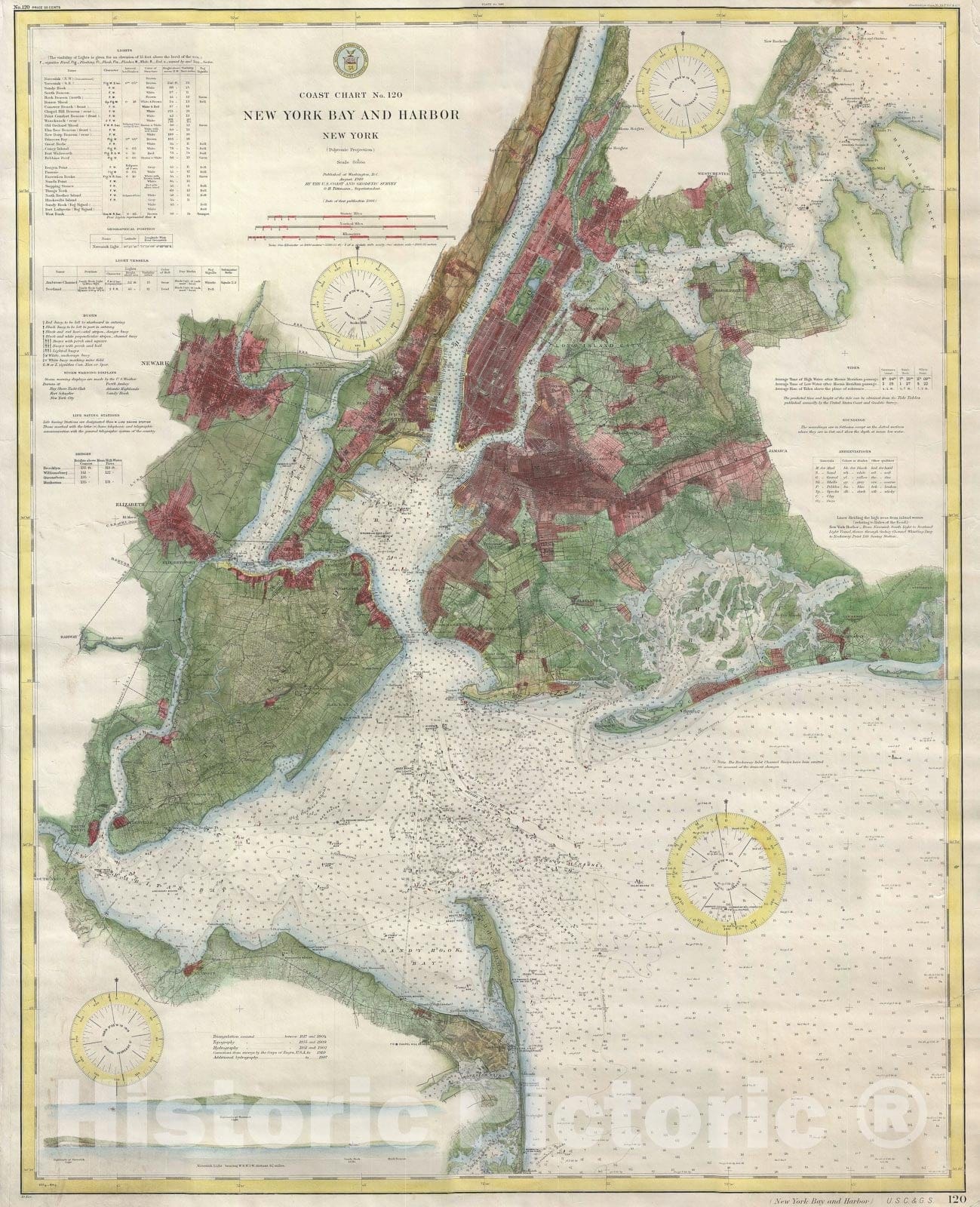 • Historic Map : Nautical Chart New York City and Harbor, U.S. Coast Survey, 1910, Vintage Wall Art