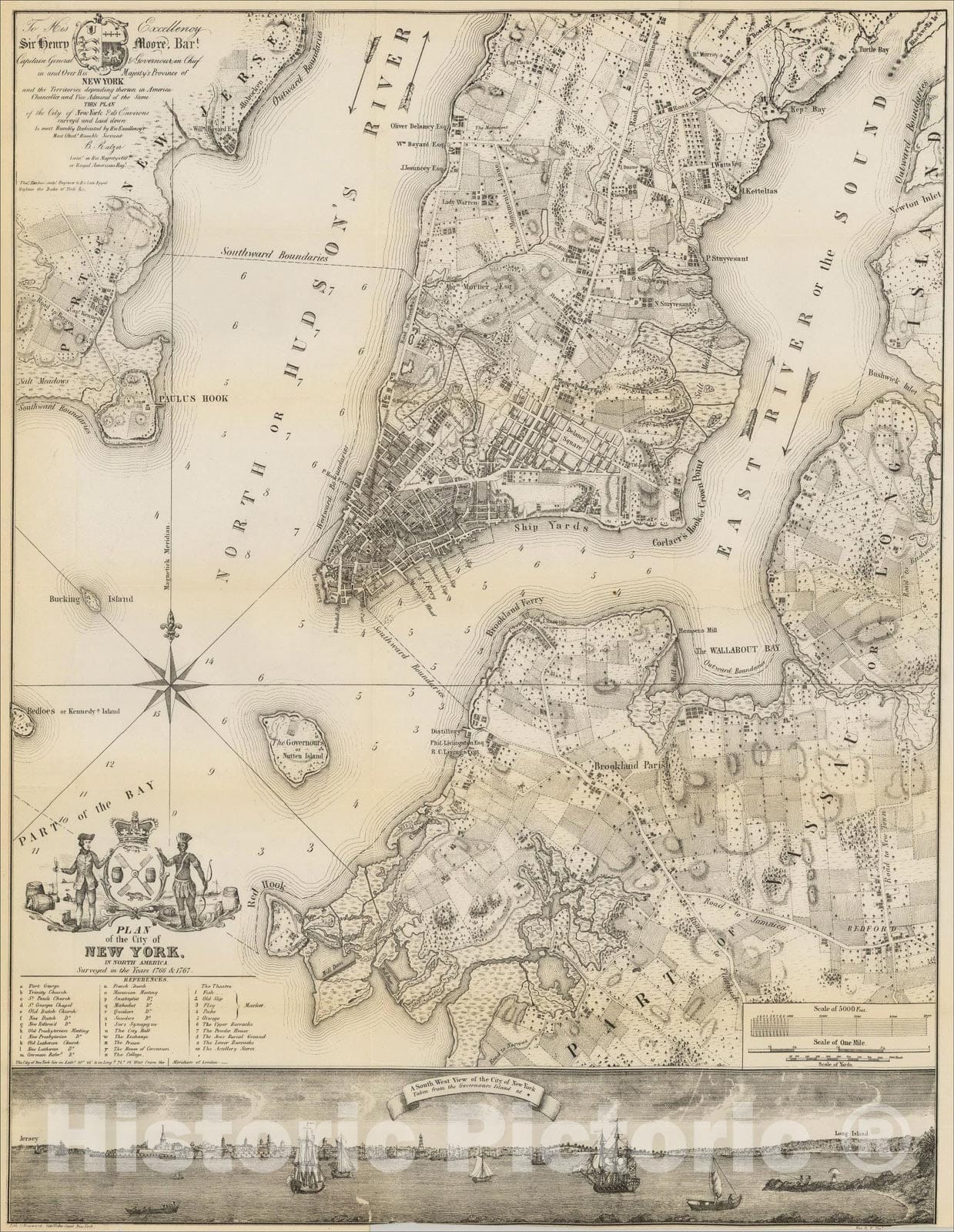 Plan of the City of New York, In North America. Surveyed in the Years 1766 & 1767., 1770, Valentine's Manual, v1, Vintage Wall Art :