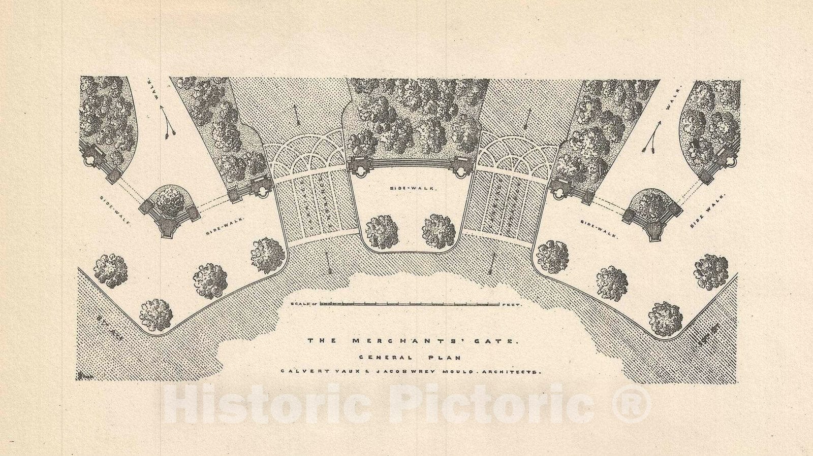 Plan of The Merchant's Gate in Central Park, New York City "Columbus Circle", Vaux, 1860