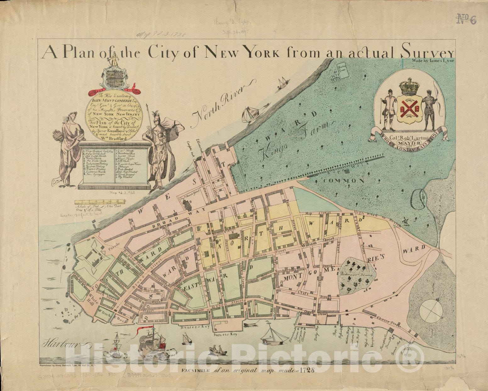Historical Map, 1890 A Plan of the city of New York from an actual survey, Vintage Wall Art