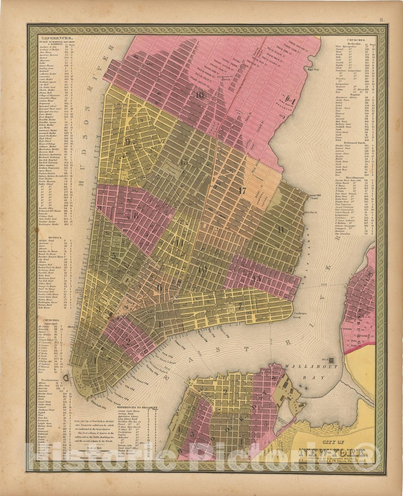 • .Historic Map : New York City 1847 , A New Universal Atlas of the World , Vintage Wall Art