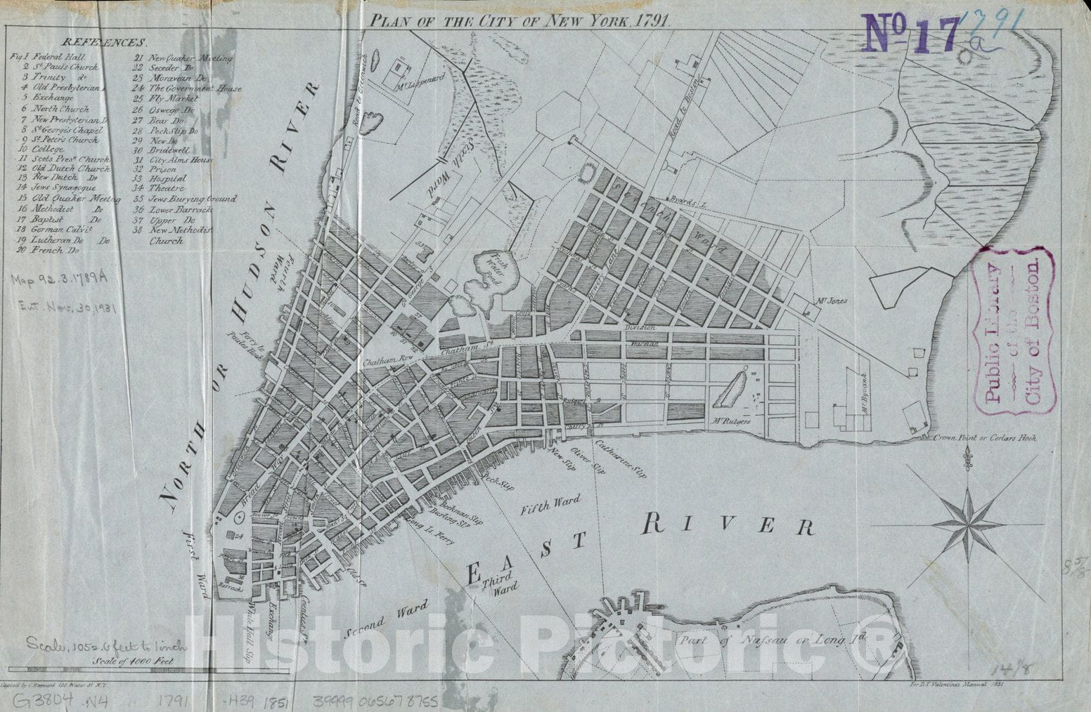Historical Map, Plan of The City of New York, 1791, Vintage Wall Art