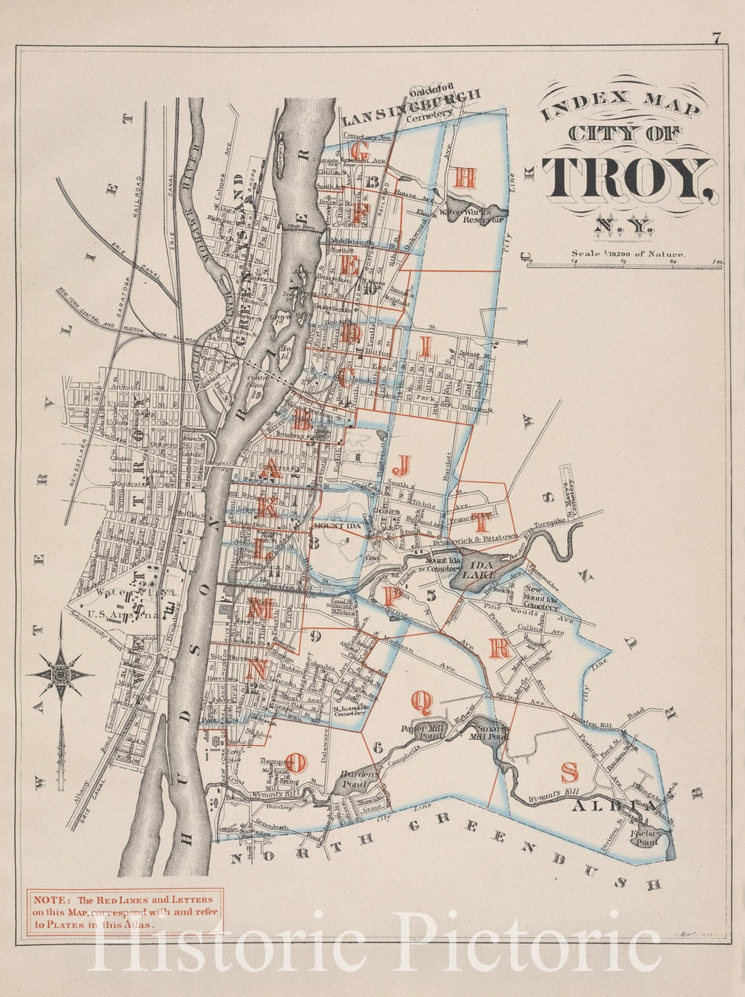 Historic Map - 1881 Troy, New York (N.Y.), Index Map City Of Troy, N.Y. - Vintage Wall Art