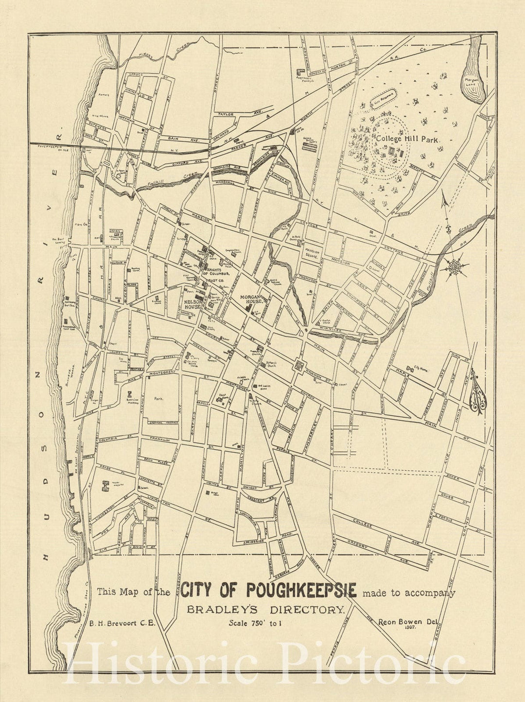 Map : Poughkeepsie, New York 1907, This map of the City of Poughkeepsie made to accompany Bradley's Directory , Antique Vintage Reproduction