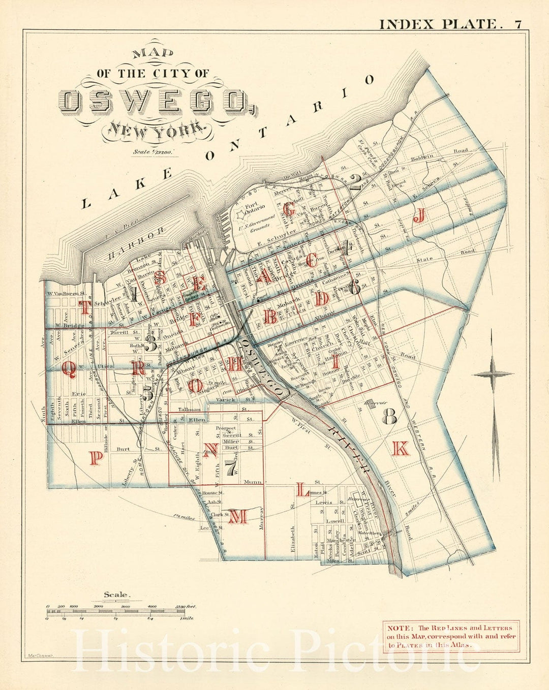 Historic 1880 Map - City Atlas of Oswego, New York - Map of The City of Oswego, New York - Atlas of The City of Oswego N.Y.