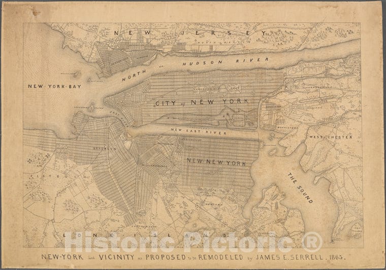 • .Historic 1865 Map - New York And Vicinity As Proposed To Be Remodeled.Of New York City And State - New York City & Vicinity - Vintage Wall Art