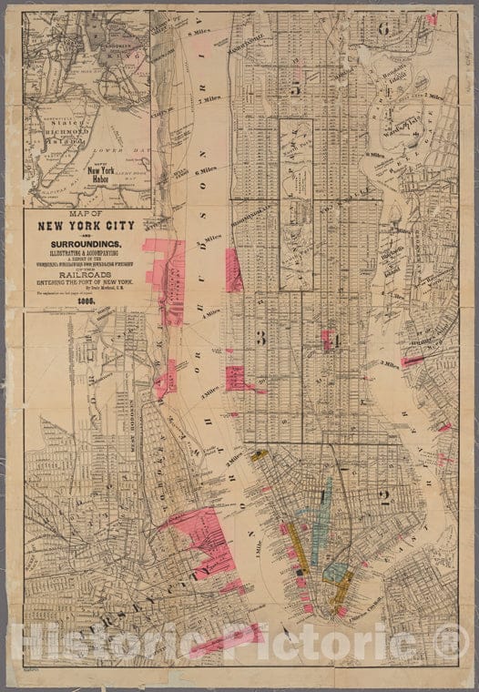 Historic 1871 Map - Map Of New York City And Surroundings : Illustrating & Accompany - Vintage Wall Art