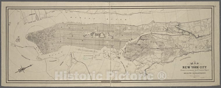 Historic 1874 Map - Map Of New York City/Drawn To Accompany The 4Th Annual Report - Vintage Wall Art