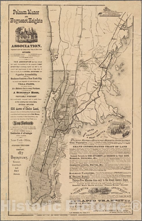 Historic 1874 Map - Map Showing Location Of Lands Of The Pelham Manor & Huguenot Heiof New York City And State - New York City & Vicinity