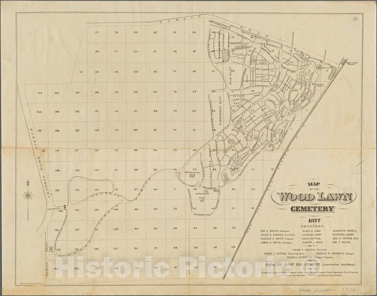 Historic 1877 Map - Map Of The Woodlawn Cemetery.Of New York City And State - Bronx - Vintage Wall Art