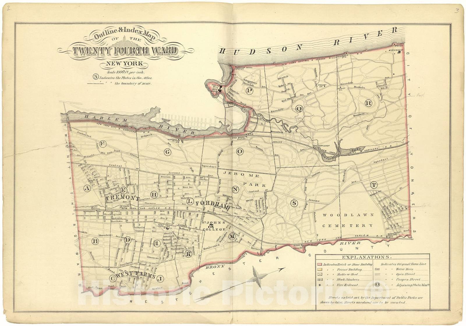 Historic 1882 Map - Atlas of The 24th Ward, City of New York - Outline & Index Map of The Twenty Fourth Ward New York - Atlas of The Twenty Fourth Ward, New York City