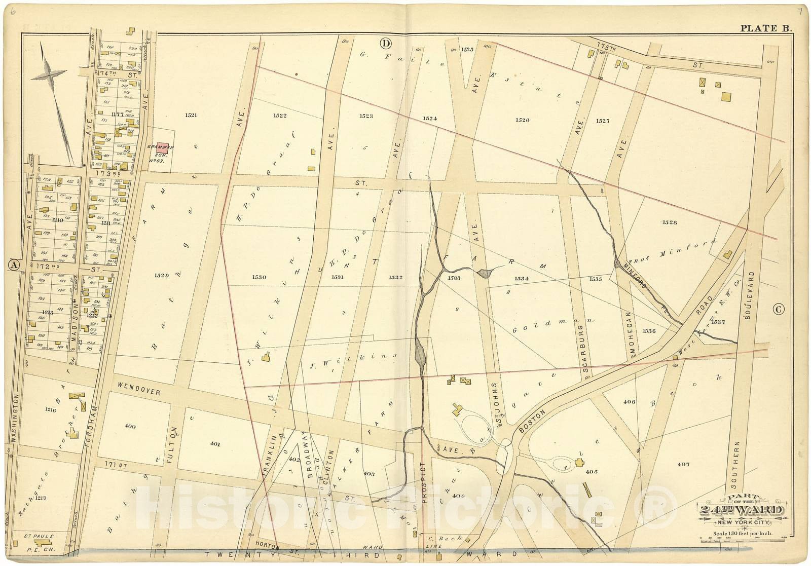 Historic 1882 Map - Atlas of The 24th Ward, City of New York - Part of The 24th Ward New York City - Plate B - Atlas of The Twenty Fourth Ward, New York City