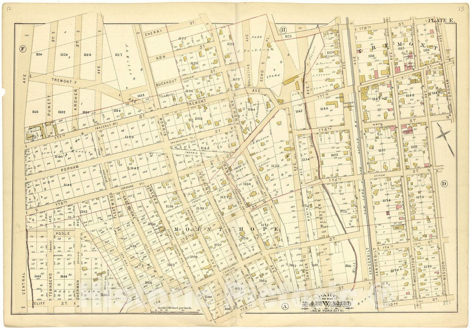 Historic 1882 Map - Atlas of The 24th Ward, City of New York - Part of The 24th Ward New York City - Plate E - Atlas of The Twenty Fourth Ward, New York City