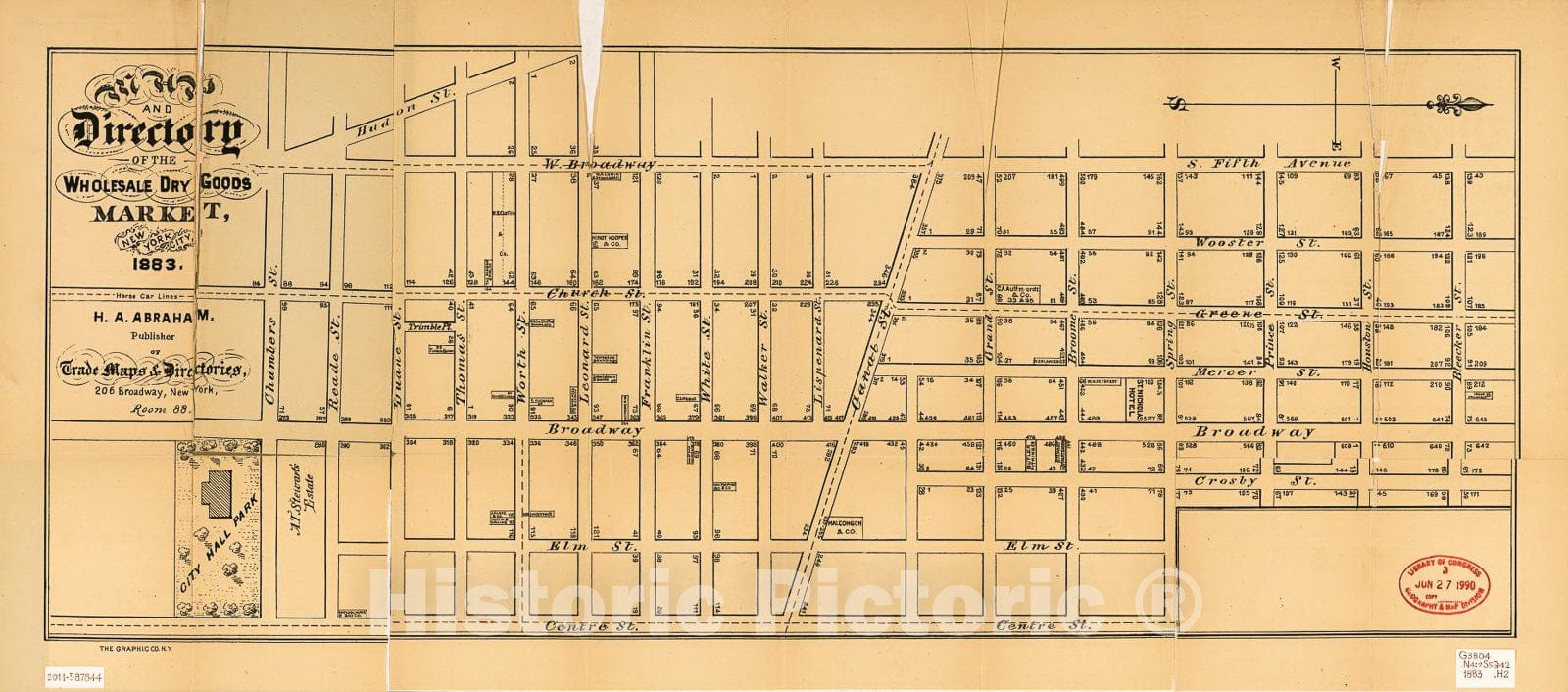 Historic 1883 Map - Map and Directory of The Wholesale Dry Goods Market, New York City