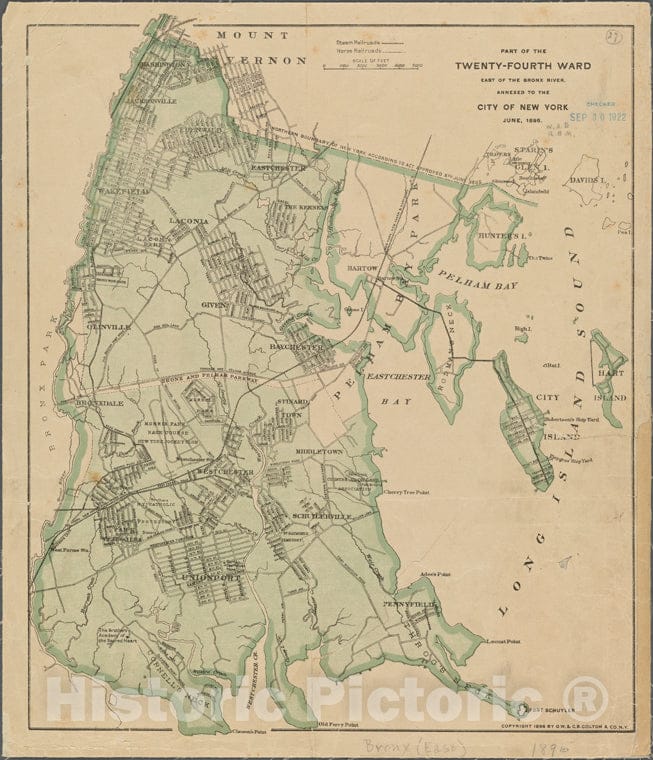Historic 1896 Map - Part Of The 24Th Ward East Of The Bronx River, Annexed To The City Of New York.Of New York City And State - Bronx