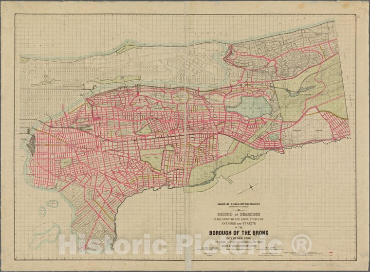 • .Historic 1900 Map - Record Of Searches In Relation To The Legal Status Of Avenues And Streets In The Borough Of The Bronx.Of New York City And State - Bronx - Vintage Wall Art