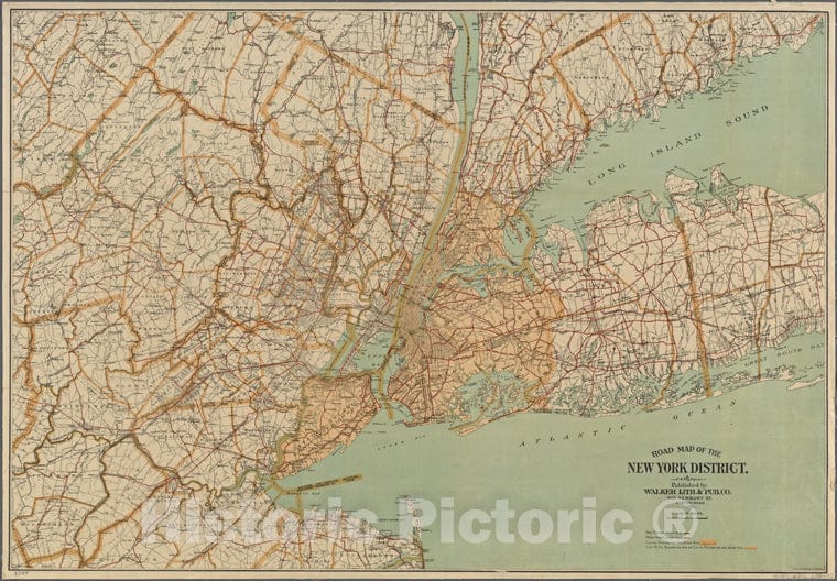 Historic 1900 Map - Road Map Of The New York District.Of New York City And State - New York City & Vicinity - Vintage Wall Art