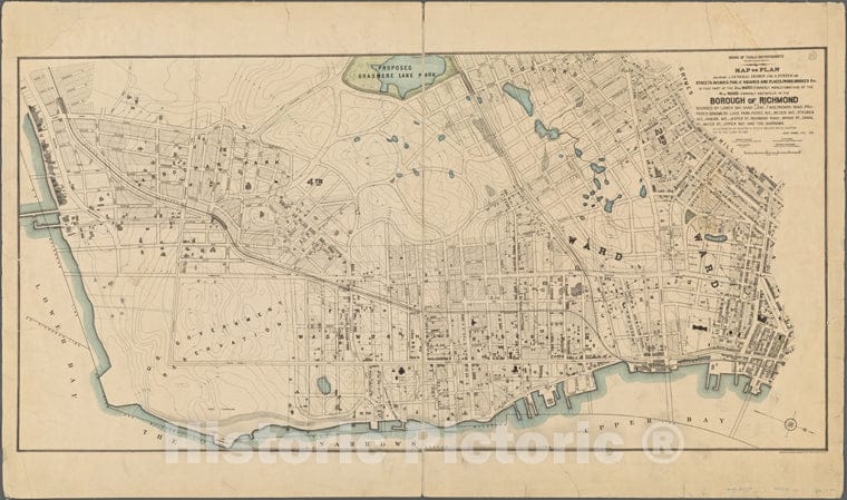 Historic 1901 Map - Map Or Plan Showing A General Design For A System Of Streets, Avof New York City And State - Staten Island - Vintage Wall Art