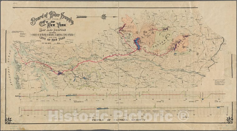 • .Historic 1905 Map - Map And Profile Showing Sources Of, And Manner Of Obtaininof New York City And State - New York City & Vicinity - Vintage Wall Art