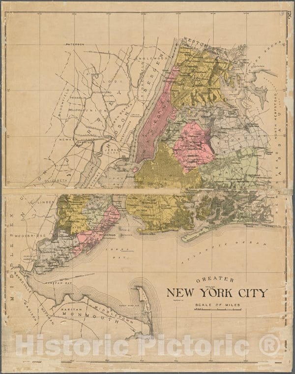 Historic 1911 Map - Greater New York City.Of New York City And State - New York City & Vicinity