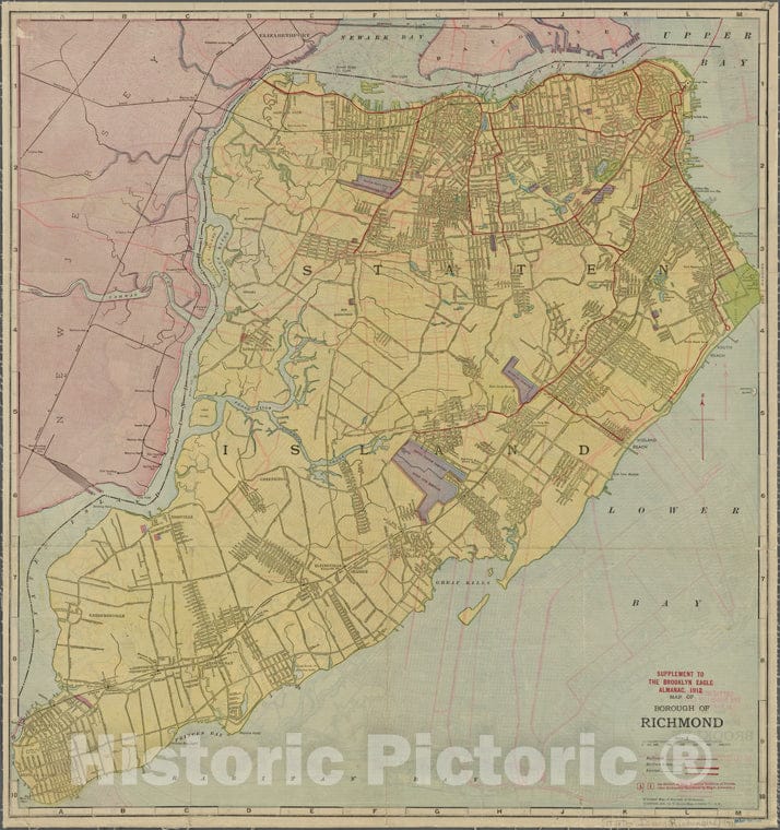 Historic 1911 Map - Williams' Map Of The Borough Of Richmond.Of New York City And State - Staten Island - Vintage Wall Art