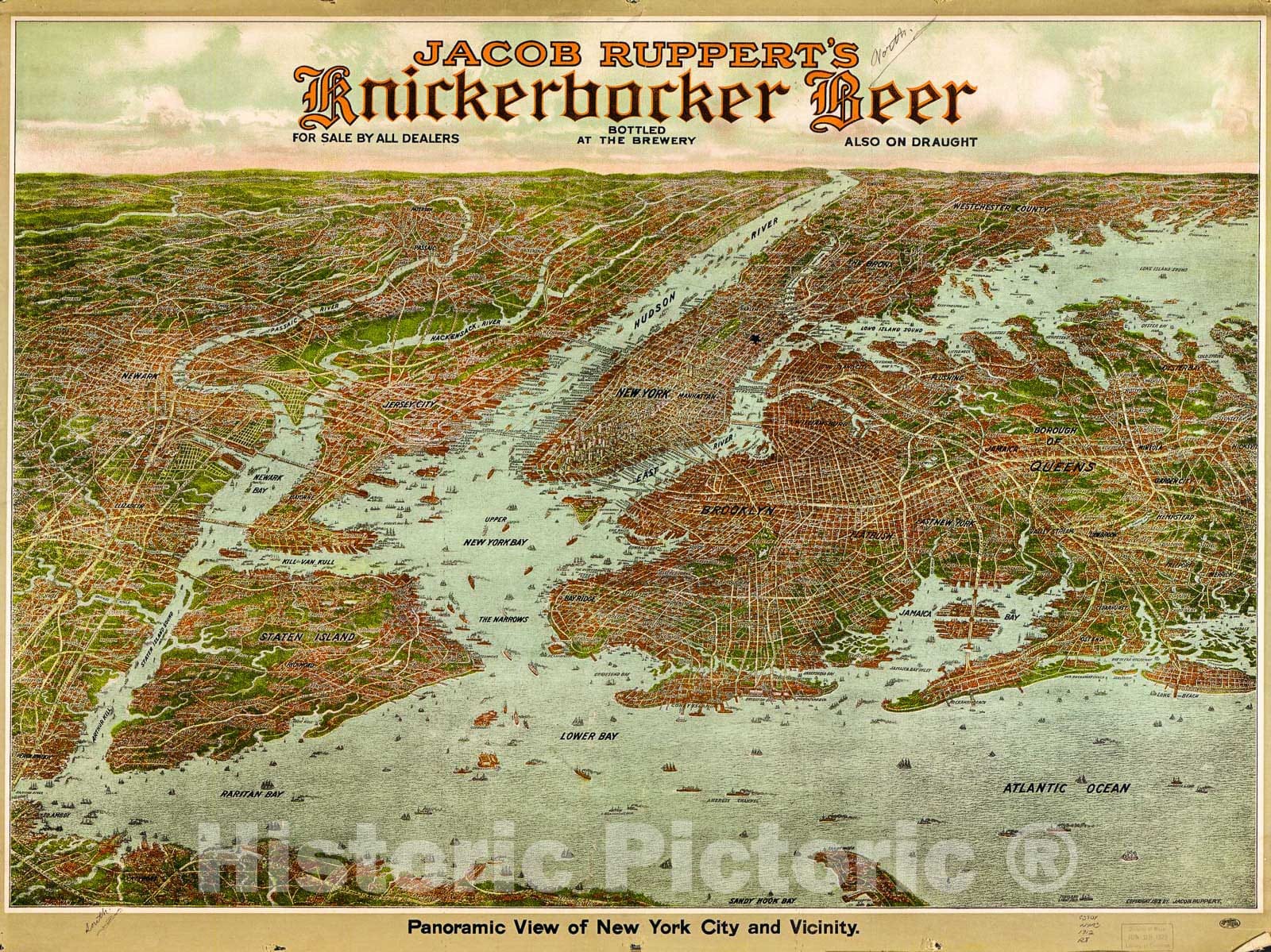Historic 1912 Map - Panoramic View of New York City and Vicinity.