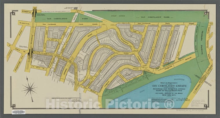 • .Historic 1912 Map - Map Of Property Of The Van Cortlandt Estate Situated Between Broof New York City And State - Bronx - Vintage Wall Art