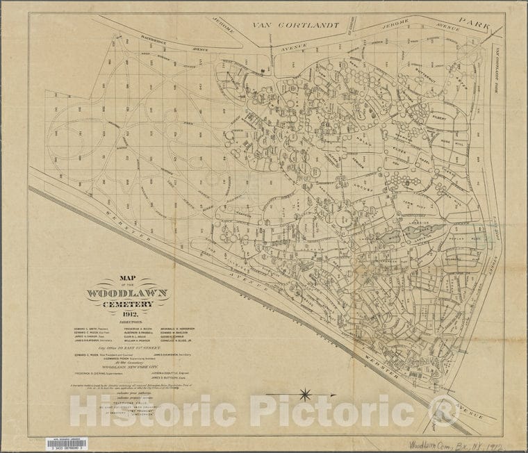 • .Historic 1912 Map - Map Of The Woodlawn Cemetery.Of New York City And State - Bronx - Vintage Wall Art