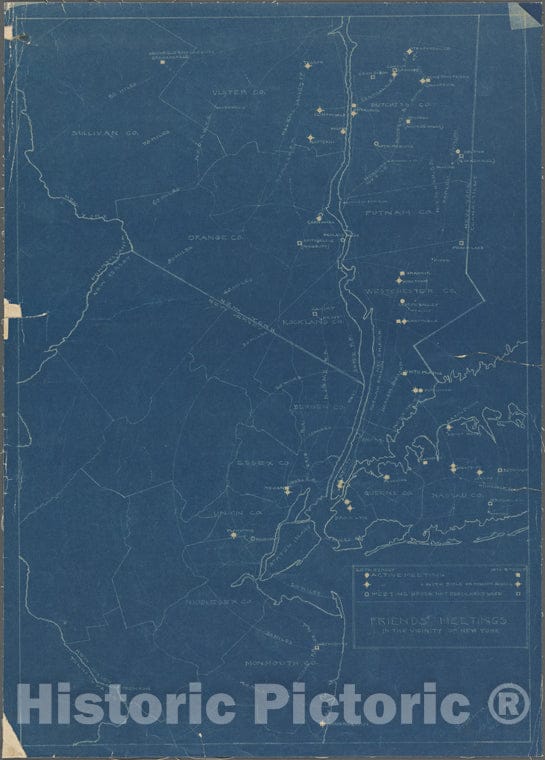 • .Historic 1914 Map - [Map Of] Friends' In The Vicinity Of New York.Of New York City And State - New York City & Vicinity - Vintage Wall Art