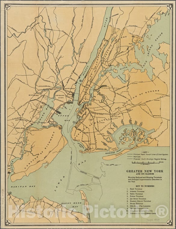 Historic 1914 Map - Greater New York And Its Harbor, Showing Railroad And Shipping Tof New York City And State - New York City & Vicinity